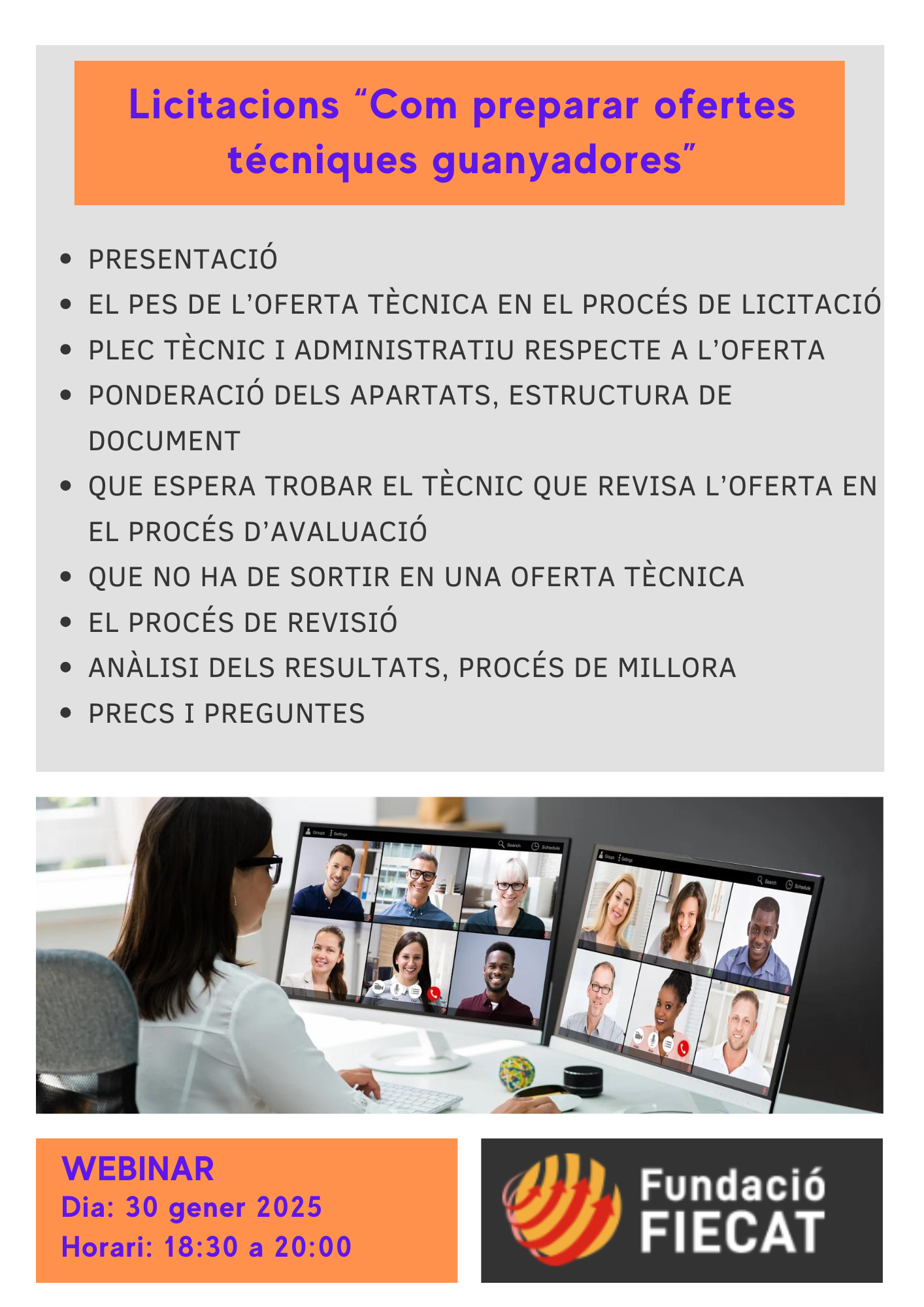 La Fundació FIECAT presenta aquest webinar amb l’objectiu d’analitzar i profunditzar en com estructurar una oferta tècnica guanyadora